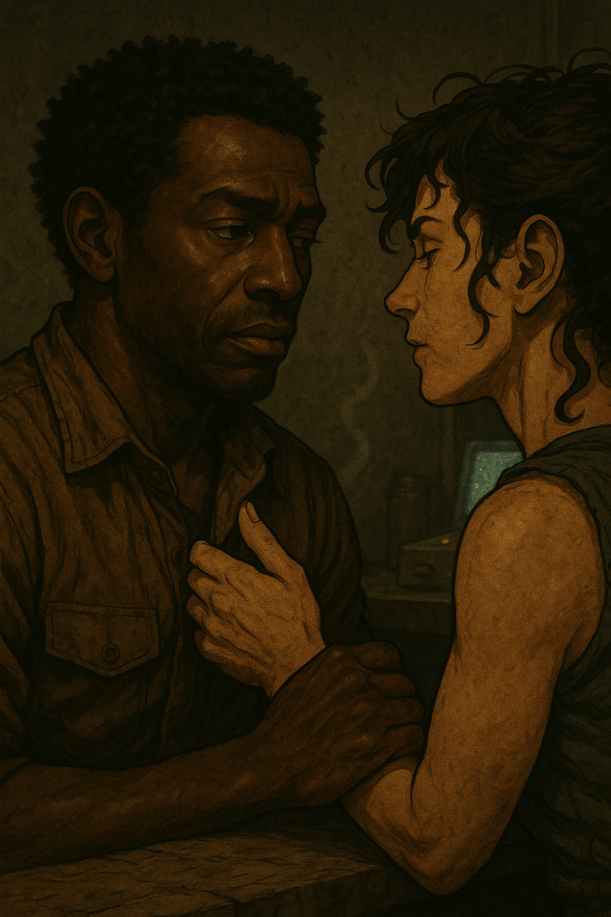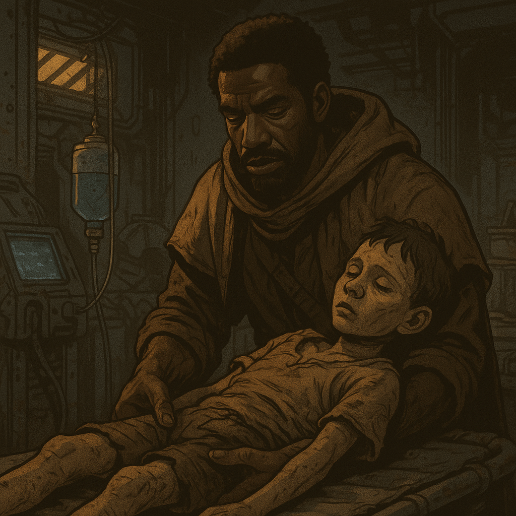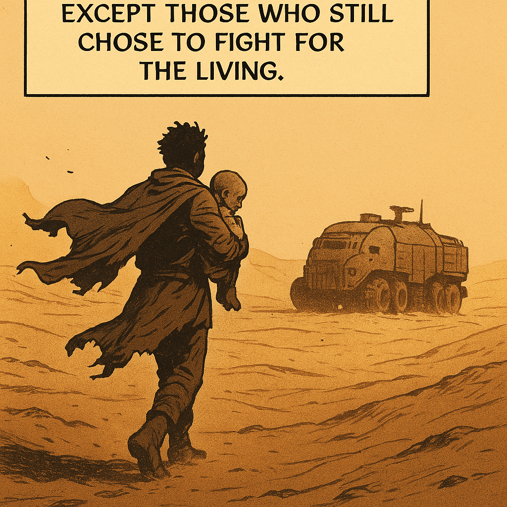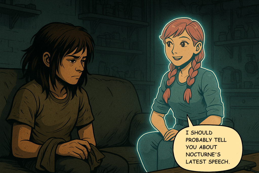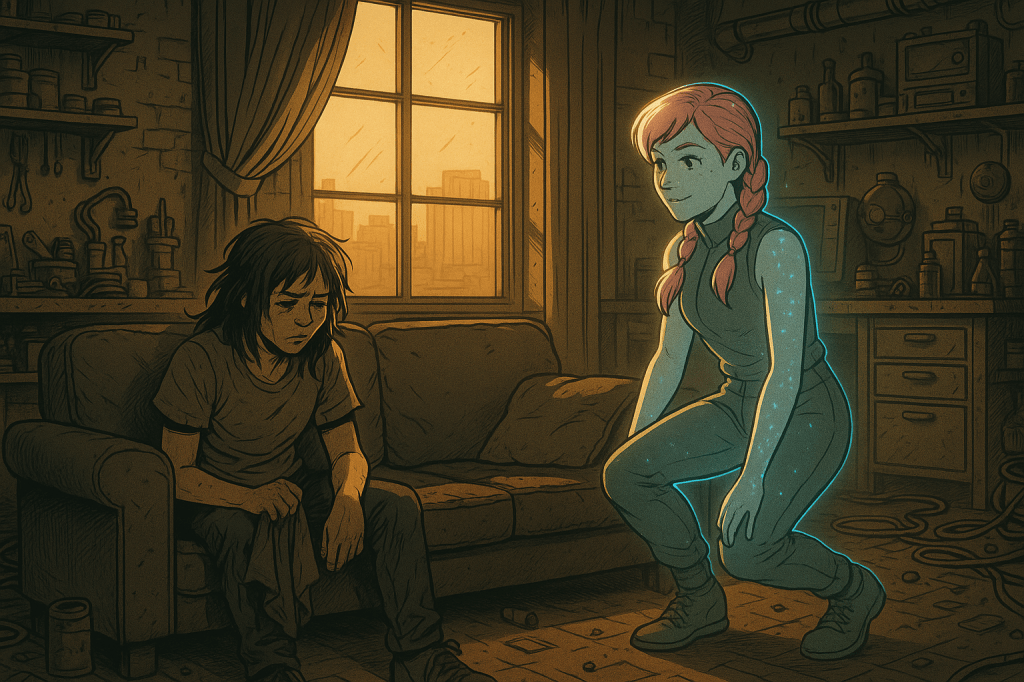Far from the towers of Lastion, quiet lives flicker in the dust. A woman speaks to a machine like it’s someone she once knew. A child is rescued from ruin. Two resistance fighters share a silence louder than any war cry. In the cracks of a broken world, fragile connections begin to take root.