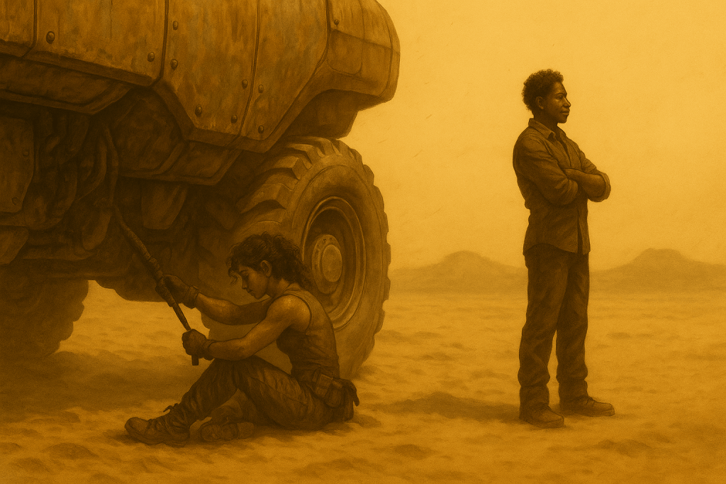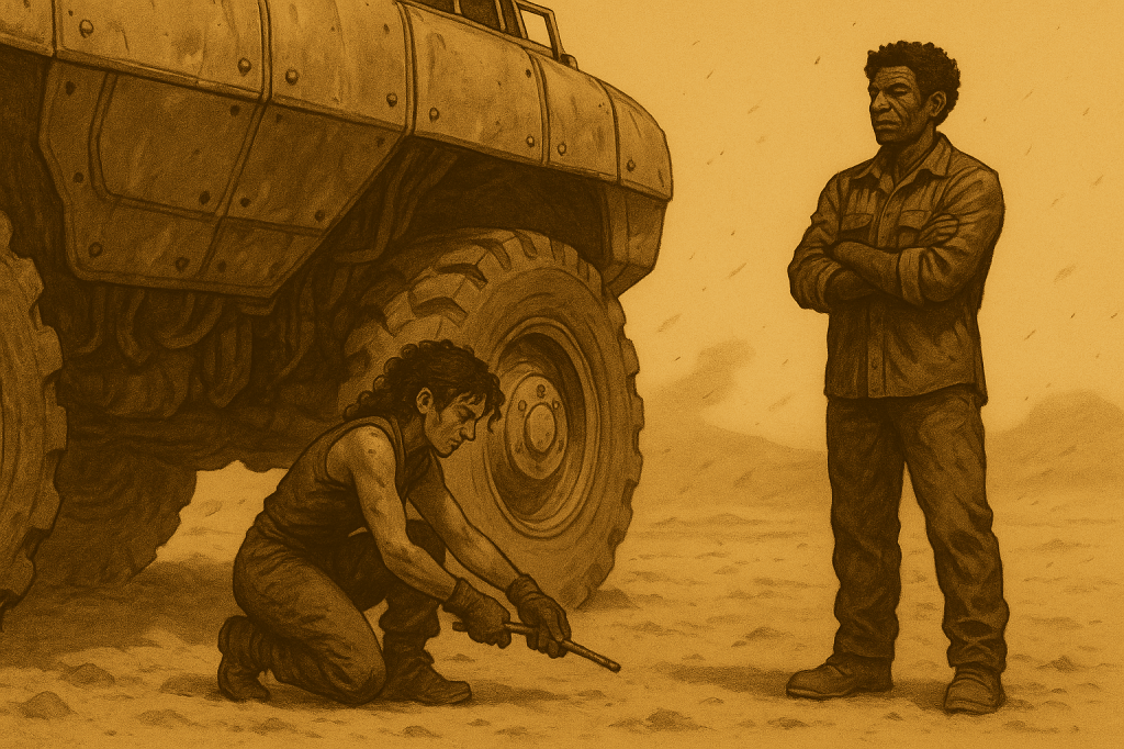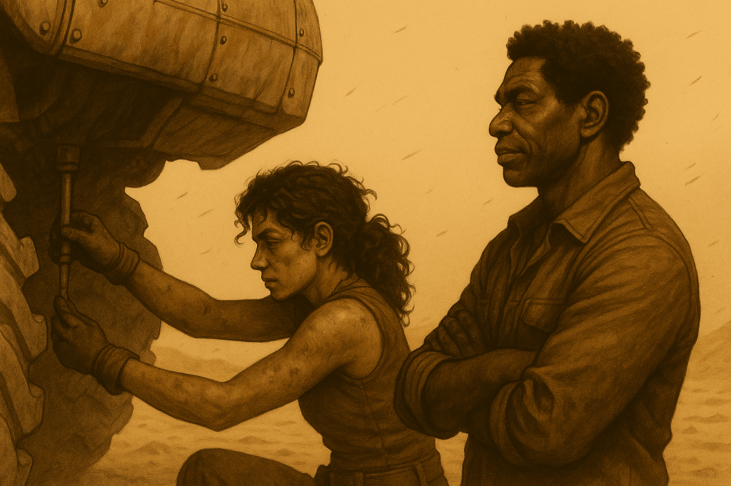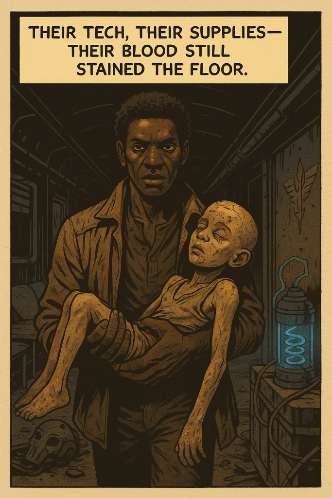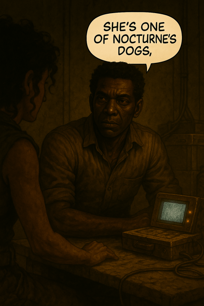 Far from the towers of Lastion, quiet lives flicker in the dust. A woman speaks to a machine like it’s someone she once knew. A child is rescued from ruin. Two resistance fighters share a silence louder than any war cry. In the cracks of a broken world, fragile connections begin to take root.