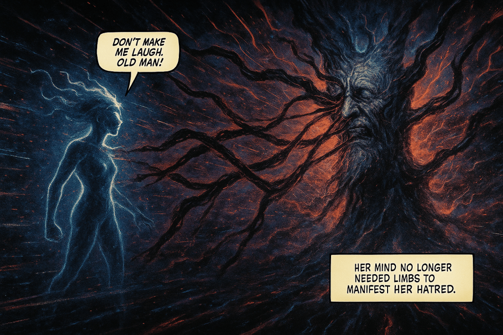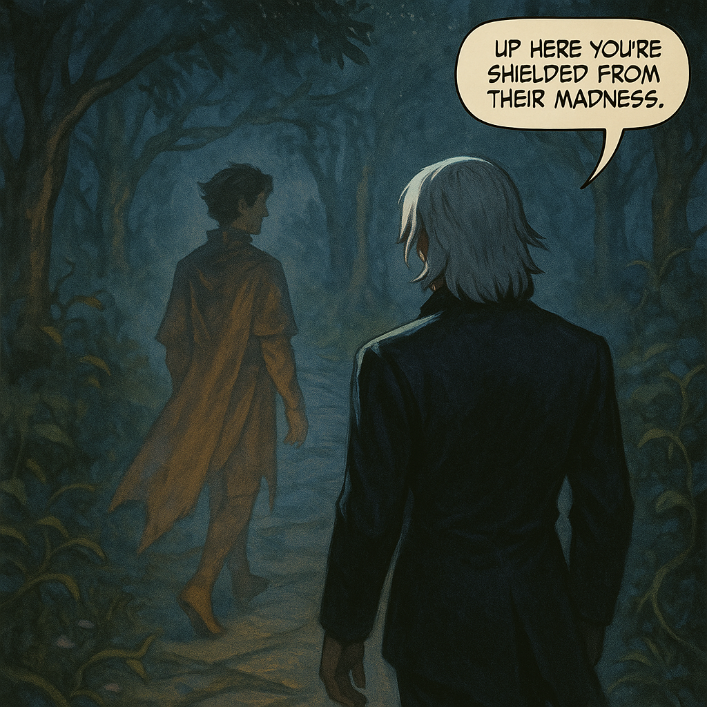 Chapter Six enters a surreal realm beyond the physical, where memory, identity, and power twist and overlap. With haunting imagery and introspective depth, this chapter marks a turning point in Evenstar—a moment of reckoning that transcends space and form. What do we become when the past can no longer define us?