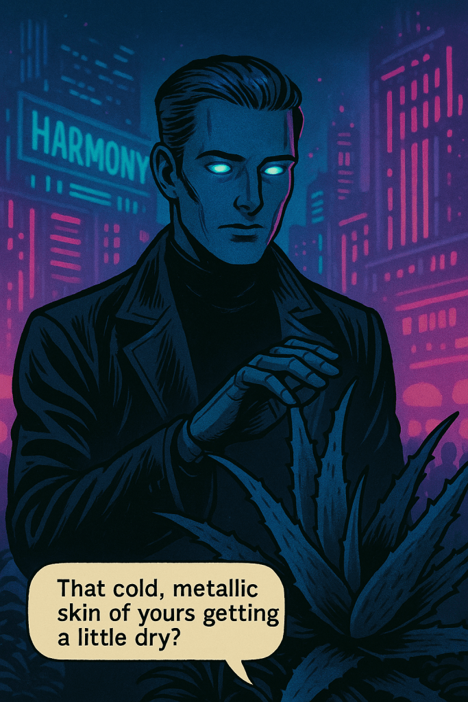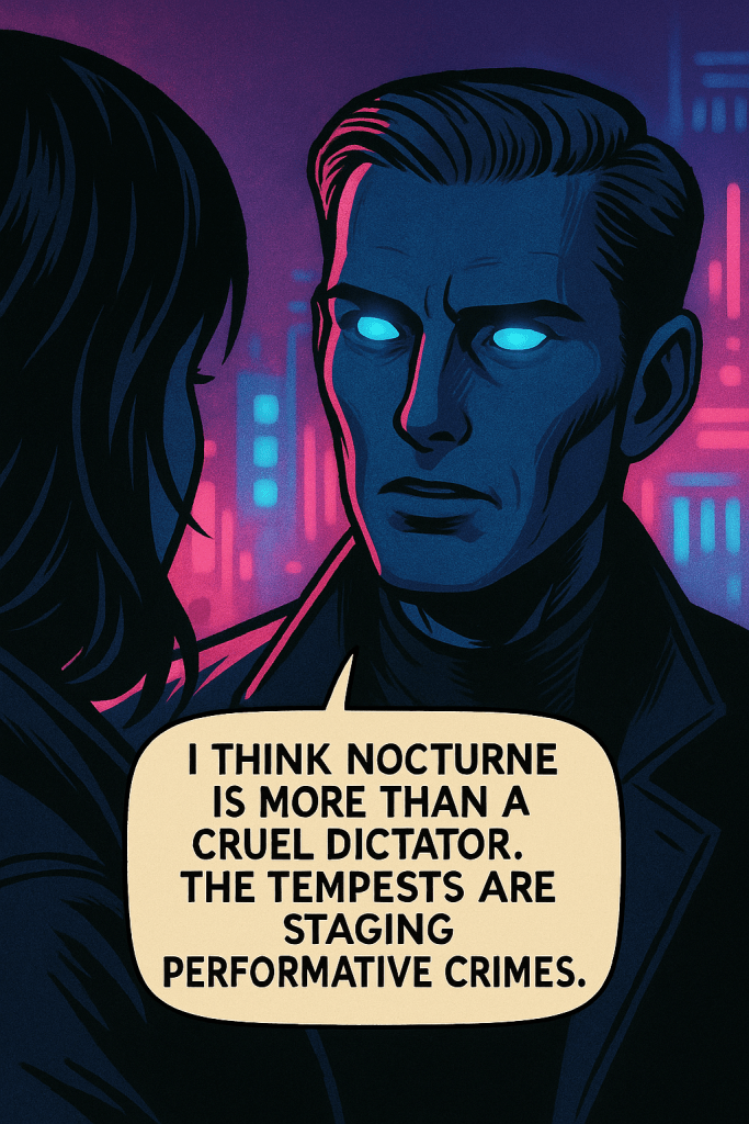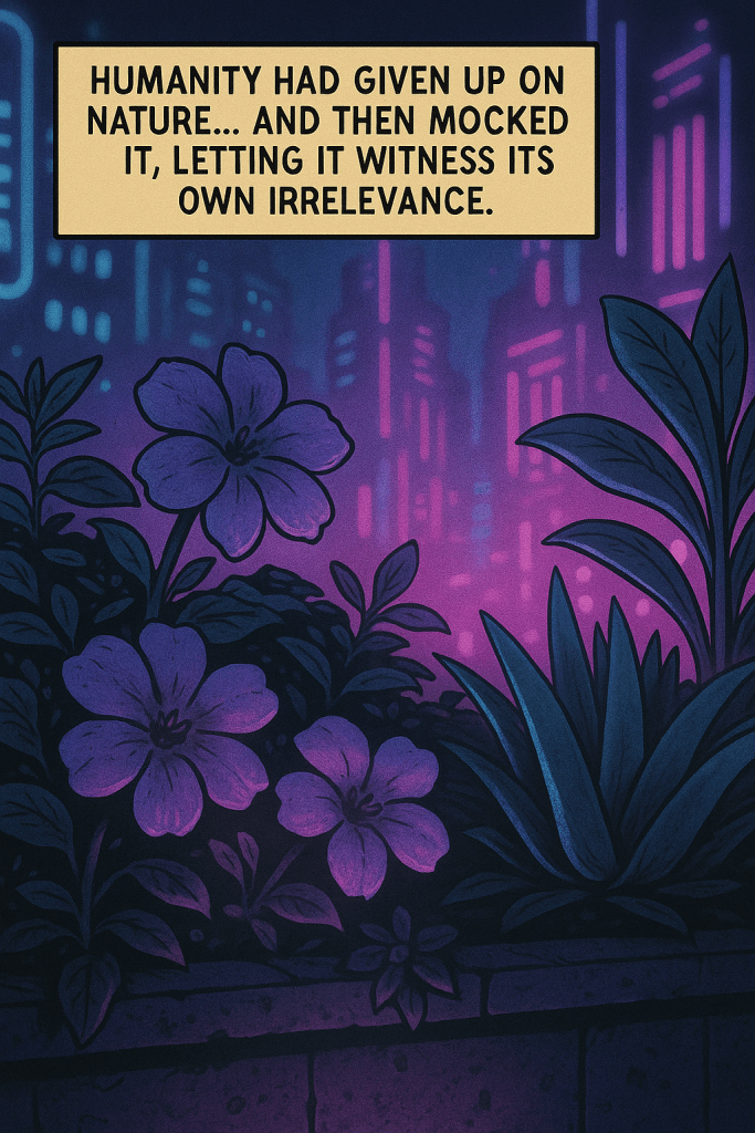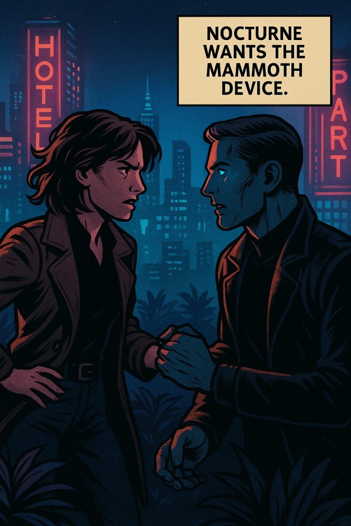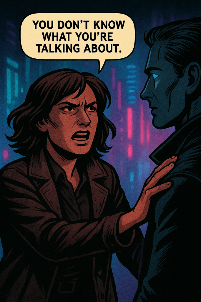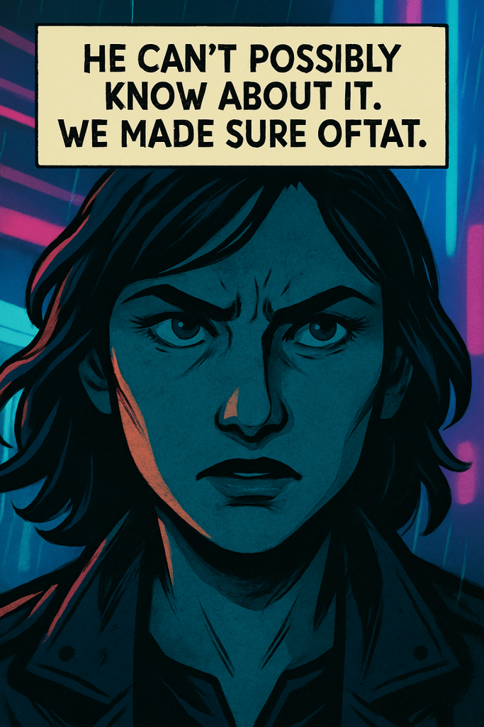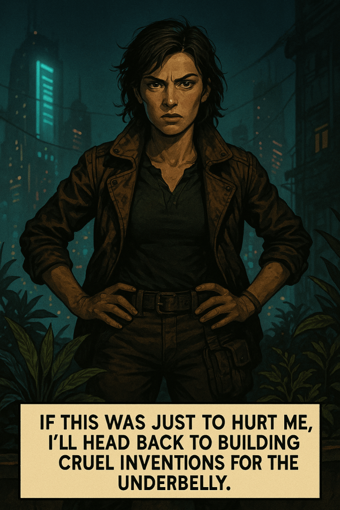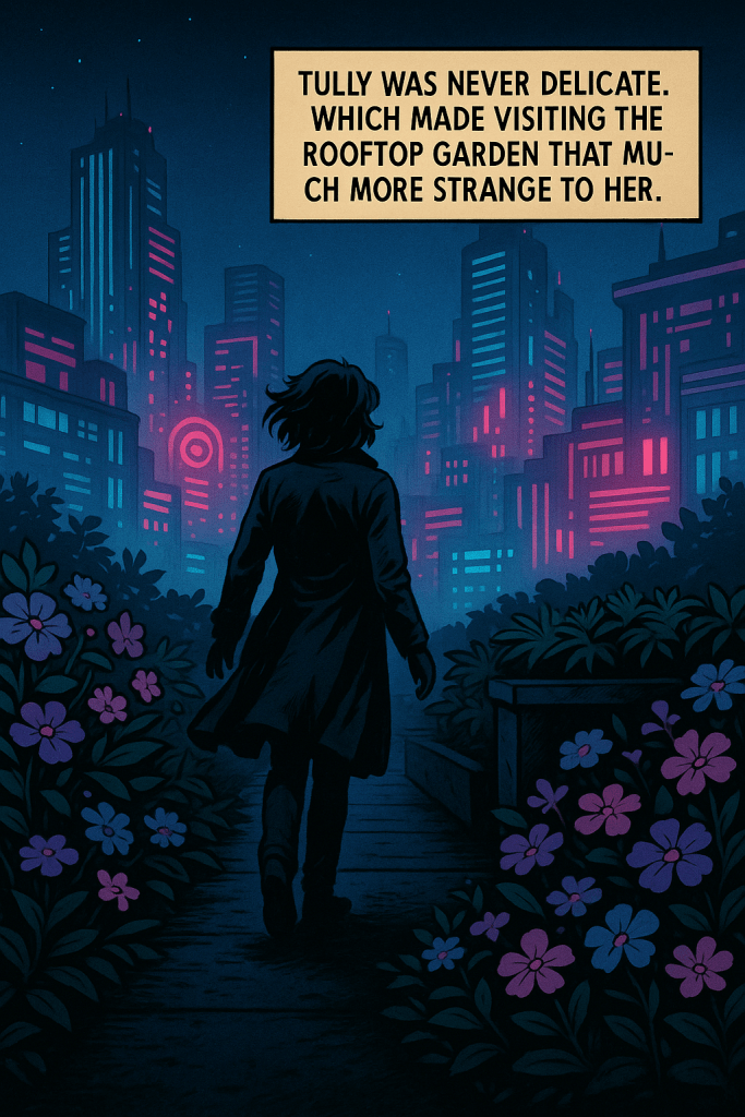 High above the city ruins, in a forgotten rooftop garden, Tully Evenstar confronts Wedge—a synthetic being bound by loyalty and code. Amid decaying vines and artificial stars, a quiet battle unfolds: truth versus denial, memory versus design. Wedge hints that Kara, Tully’s long-lost sister, might still be alive. But the cost of believing might be too great.