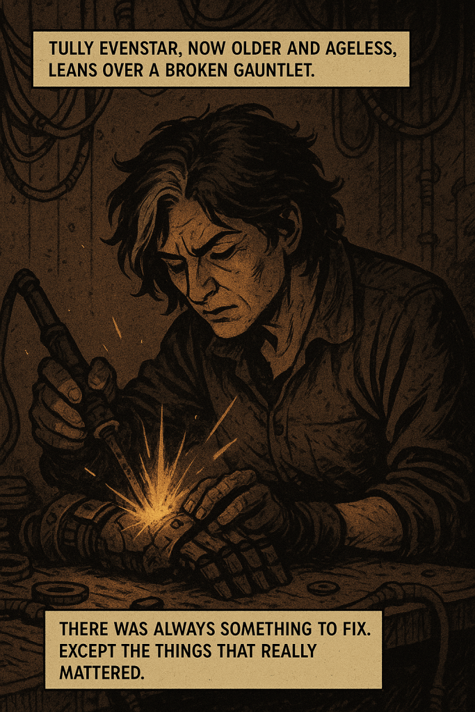As whispers of rebellion stir in the undercity, and elemental powers once thought extinct begin to return, Tully must face the past she buried. Chapter One introduces the world of Evenstar—a science fantasy epic of grief, memory, and resistance. Set in a dystopian realm of steampunk tech and mythic energy, this opening chapter lays the foundation for an unforgettable journey across the dying planet of Tress.